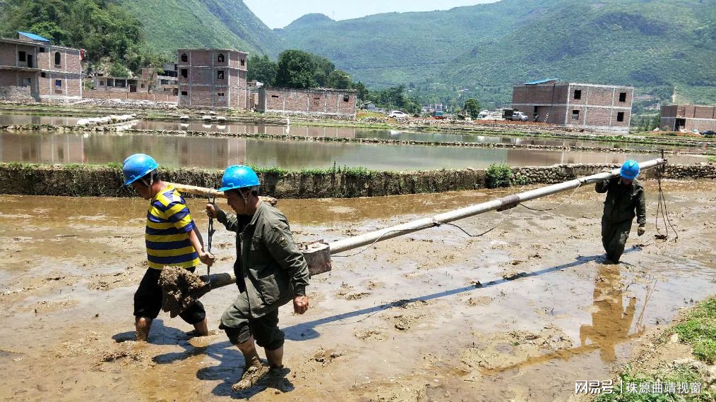 眼下正是農(nóng)忙時節(jié)。云南曲靖師宗龍慶黑爾到處是一派繁忙的景象,犁田的、施肥的、撒種的、搭塑料棚的……在黑爾村委會大寨,遠遠的看著水田里一群戴藍色安全帽的人,頂著烈日熱火朝天地干著,栽秧還要帶安全帽?走進一看,因施工地點條件限制,一群電力工人正艱難的用人力搬運電桿,趴桿立桿。該項目屬于師宗縣2020年第一批配電網(wǎng)基建應(yīng)急項目——師宗供電局大同供電所龍慶鄉(xiāng)黑爾村委會大寨抽水變新建工程。